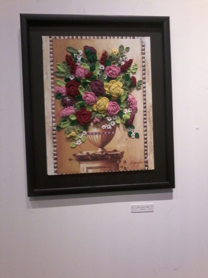 أما ولاء فكانت تريد شيئاً مميزاً وفي كل يوم يأتي بفكرة وتقول ‘بس برضو يا أبله أحسها مو جديدة’ وفي النهاية قلت لها لا يوجد وقت وكانت توجد لدينا لوحة لمزهرية جاهزة فقلت لها لماذا لا نحول هذه اللوحة إلى تحفة فنية قالت كيف طلبت منها أن تشتغل وردات كروشية أاحجام مختلفة وبألوان هي تختارها وتنسقها وفعلاً عملت بحماس، كانت تشتغل في كل الأوقات وكنت أراها وقد وضعت الخيط في جيب مريولها ليكون معها في كل وقت والسنارة في يدها تشتغل وهي تسير في الممرات وفي الطابور والفسحة.