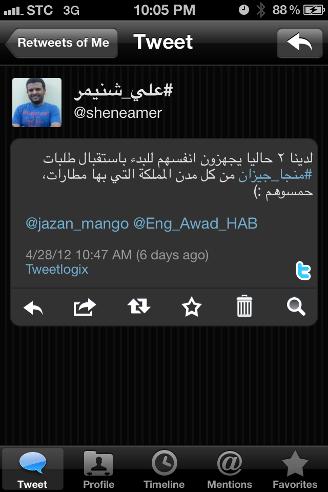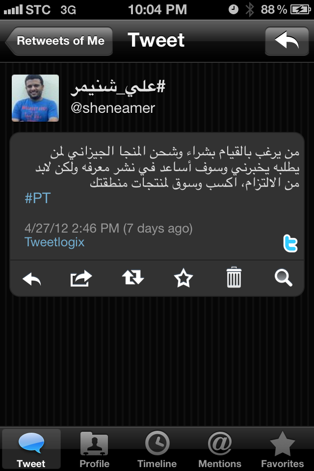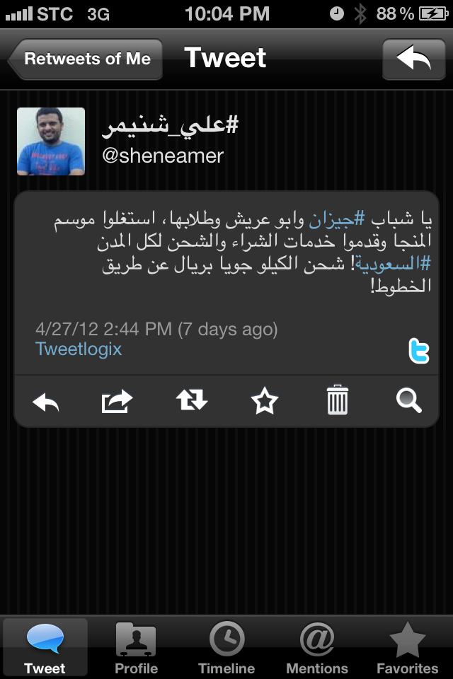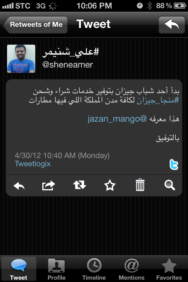 بدأت من جهتي في تسويق الموقع والمشروع على تويتر دعما لهذا النحيل الجازاني – وخاصة بعدما أهدى لي ٦ كراتين من أول قطفة في الموسم – وبعد أيام رأيت مقطعاً له على يوتيوب يقدم مشروعه المبتكر في مسابقة (سرب) شبكة المستثمرين الشباب التي تدعم المشاريع المبتكرة وتسوقها للمستثمرين!